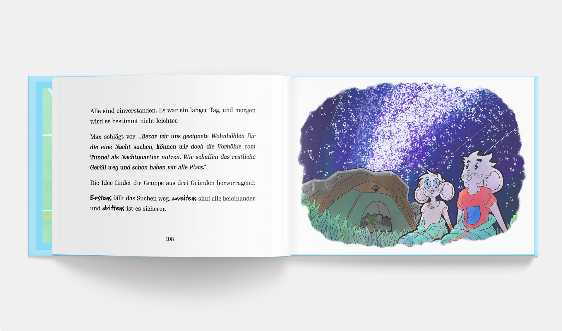 Für mich war dieser dritte Teil etwas ganz Besonderes. Ich wollte meine Illustrationen auf ein neues Level bringen – lebendiger, detailreicher und emotionaler als je zuvor. Ich glaube fest daran, dass man sich mit jedem Projekt weiterentwickeln sollte, und genau das habe ich mir vorgenommen: noch mehr Hingabe, noch mehr Ausdruck, noch mehr Liebe zu jedem einzelnen Bild. Vergleicht man die Zeichnungen mit denen aus dem ersten und zweiten Band, erkennt man sofort, wie sehr sich Stil, Dynamik und Charaktertiefe verändert haben. Auch die Zusammenarbeit zwischen Torleyunicorn und mir war so lebendig wie eh und je – voller Motivation, Kreativität und Freude daran, diese Trilogie zu etwas Besonderem zu machen. Gemeinsam haben wir die Welt der kleinen Reisenden noch einmal geöffnet, um sie mit Farbe, Fantasie und einem Hauch Abenteuerlust zu füllen.